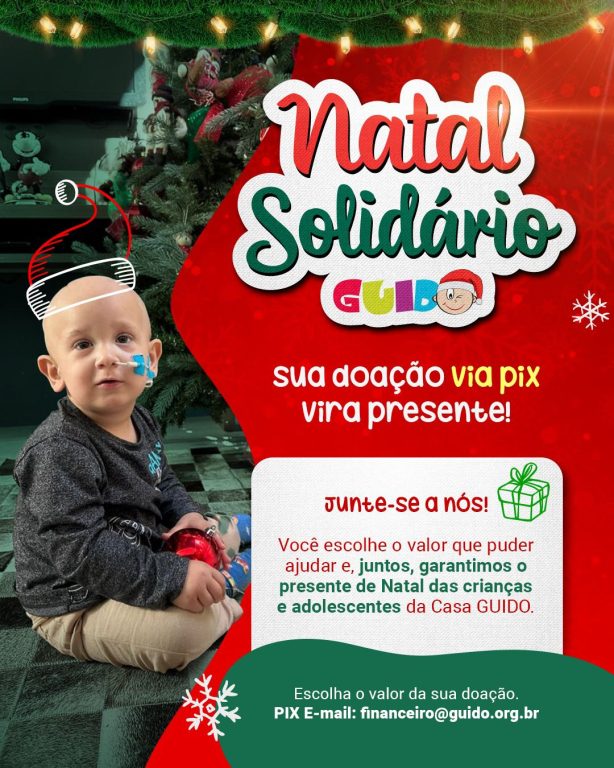 A Casa Guido se prepara para uma das datas mais esperadas pelas crianças e adolescentes que são atendidos pela entidade: a Festa de Natal, que está programada para ocorrer no dia 17 de dezembro, com a chegada do Papai Noel. O evento irá contar com um delicioso café da tarde, muitas brincadeiras e diversão garantida. E desta vez, a instituição irá oportunizar um momento ainda mais especial – na edição deste ano, todos poderão apadrinhar as crianças e adolescentes, fazendo parte do Natal de cada uma delas. Basta doar qualquer valor por meio da chave pix [email protected].
