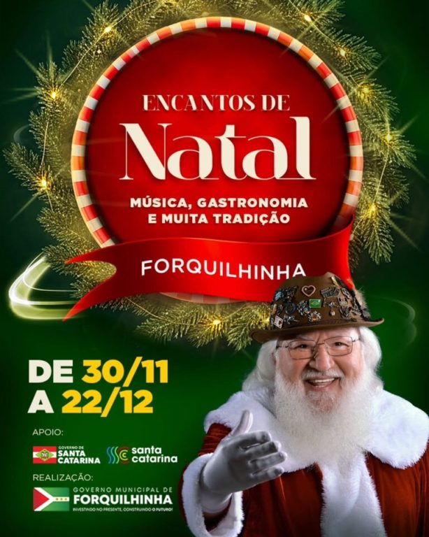 Forquilhinha dá início neste domingo (30 de novembro) à 5ª edição dos Encantos de Natal. O evento, marcado para as 19h, na Praça dos Imigrantes Alemães, marca oficialmente a abertura da programação natalina no município e contará com a presença do governador Jorginho Mello.