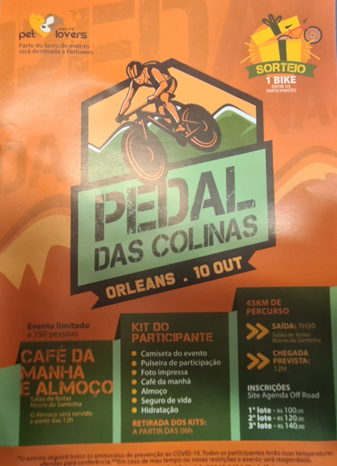 Pedal das Colinas será realizado em Orleans no próximo dia 10