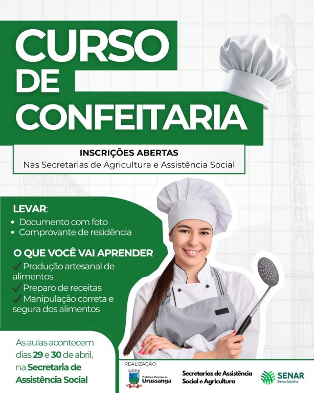 As inscrições para o Curso de Confeitaria estão abertas gratuitamente em Urussanga, uma oportunidade para quem deseja aprender novas habilidades e ampliar as possibilidades de geração de renda. Ao todo, são disponibilizadas 16 vagas e os interessados devem procurar as Secretarias de Agricultura ou Assistência Social apresentando um documento com foto e o comprovante de residência.