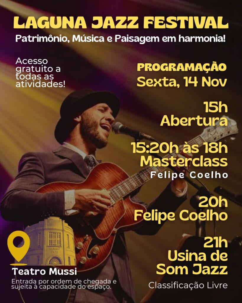 As atividades começam na sexta-feira, 14, a partir das 15h, no Teatro Mussi, e seguem ao longo do fim de semana em diferentes espaços da cidade. O festival é uma oportunidade para a comunidade e visitantes apreciarem o jazz em suas diversas vertentes, ao mesmo tempo em que movimenta o setor turístico e valoriza o patrimônio cultural de Laguna.