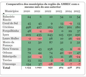 O baixo desempenho da mesorregião em setembro não reflete os números da Região Carbonífera, que fechou o mês com 563 empregos formais acrescentados, superando o saldo de 2023 (464) e o de 2024 (438).
