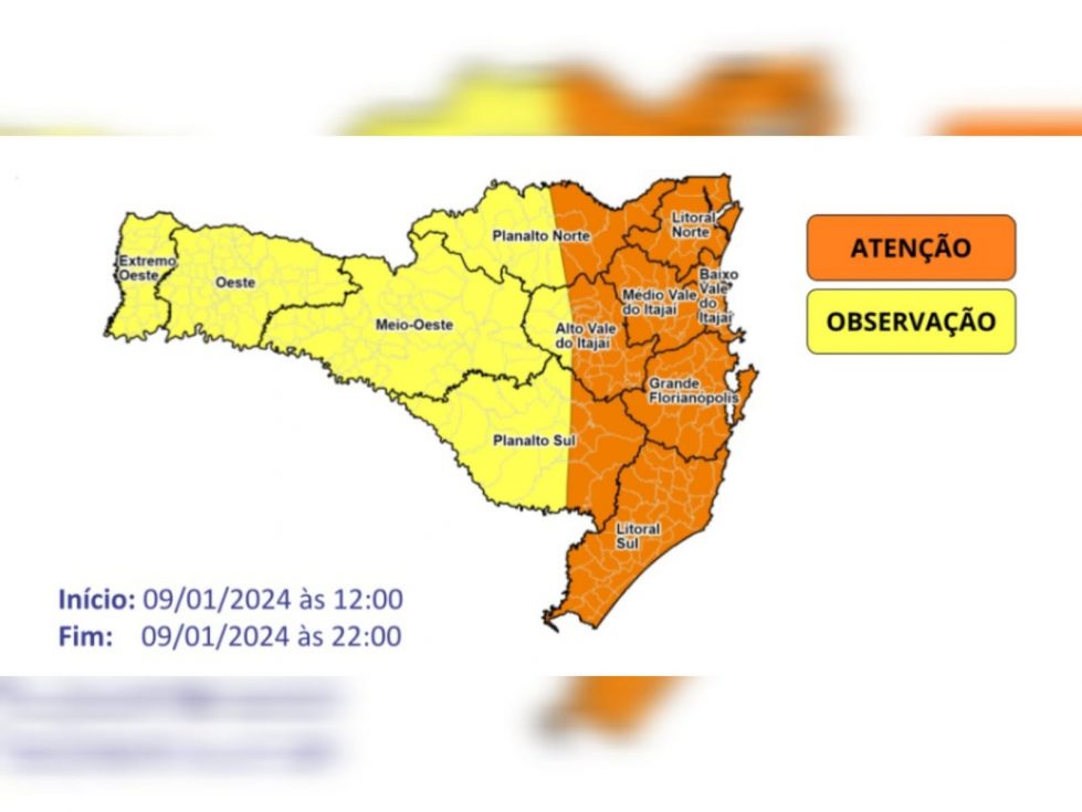 A terça-feira, 9, será marcada por temporais e chuva intensa no estado de Santa Catarina, sobretudo nas áreas entre os planaltos, em todo o Vale do Itajaí e regiões litorâneas, onde o risco é alto para danos como destelhamentos, queda de árvores e danos na rede elétrica.