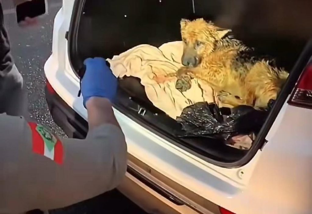 No local, a guarnição encontrou um cão da raça Pastor Alemão, debilitado, magro e com dificuldade de andar. O animal apresentava ferimentos e sinais claros de abandono, o que confirmou a suspeita inicial de maus-tratos.
