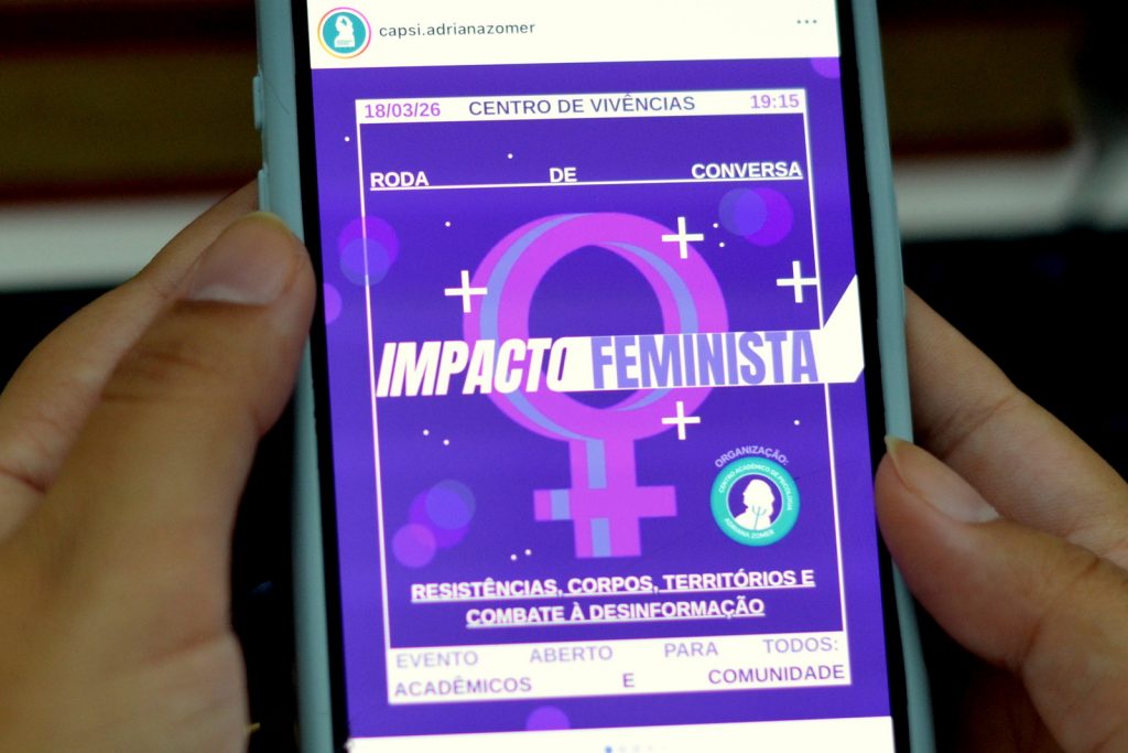 O Centro Acadêmico de Psicologia Adriana Zomer, em parceria com o Centro Universitário Barriga Verde (Unibave), promove na próxima quarta-feira, dia 18, a roda de conversa “Impacto Feminista: Resistências, Corpos, Territórios e Combate à Desinformação”. O encontro, que é gratuito e aberto a toda a comunidade, será realizado no Centro de Vivências da instituição, com início previsto para às 19h15, com o objetivo de promover reflexão e debate a respeito dos direitos das mulheres e violência de gênero.