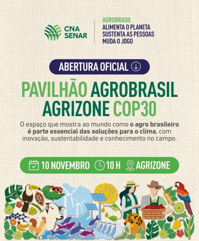 O Sistema CNA/Senar anunciou que vai promover uma agenda extensa na COP30, em Belém, de 10 a 21 de novembro, com dias temáticos, debates, conteúdos técnicos, vídeos e divulgação de tecnologias sustentáveis aplicadas no campo. A Confederação afirma que o objetivo é “levar os fatos sobre a agropecuária tropical brasileira” e rebater críticas internacionais ao setor.