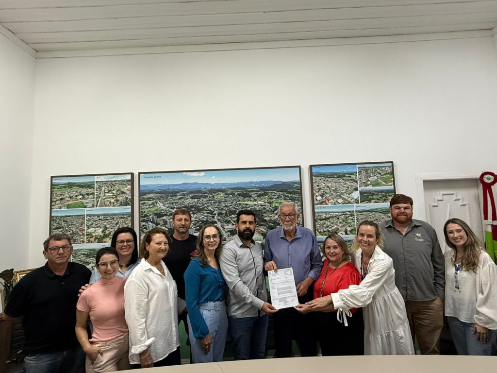 O ato ocorreu no gabinete do prefeito, com a presença de secretários e vereadores, entre eles o presidente da Câmara, Vicervânio Bez Fontana, o Toco.