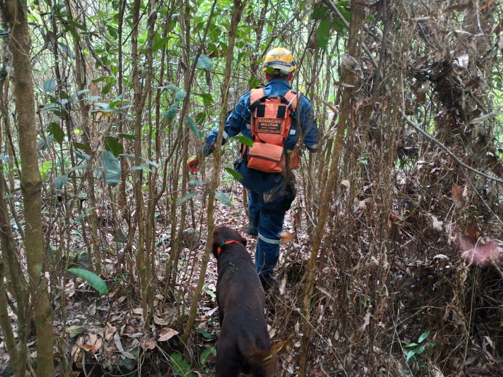 Durante a tarde, o cão indicou uma área suspeita. Ao verificarem o local, os bombeiros encontraram o homem já sem vida.