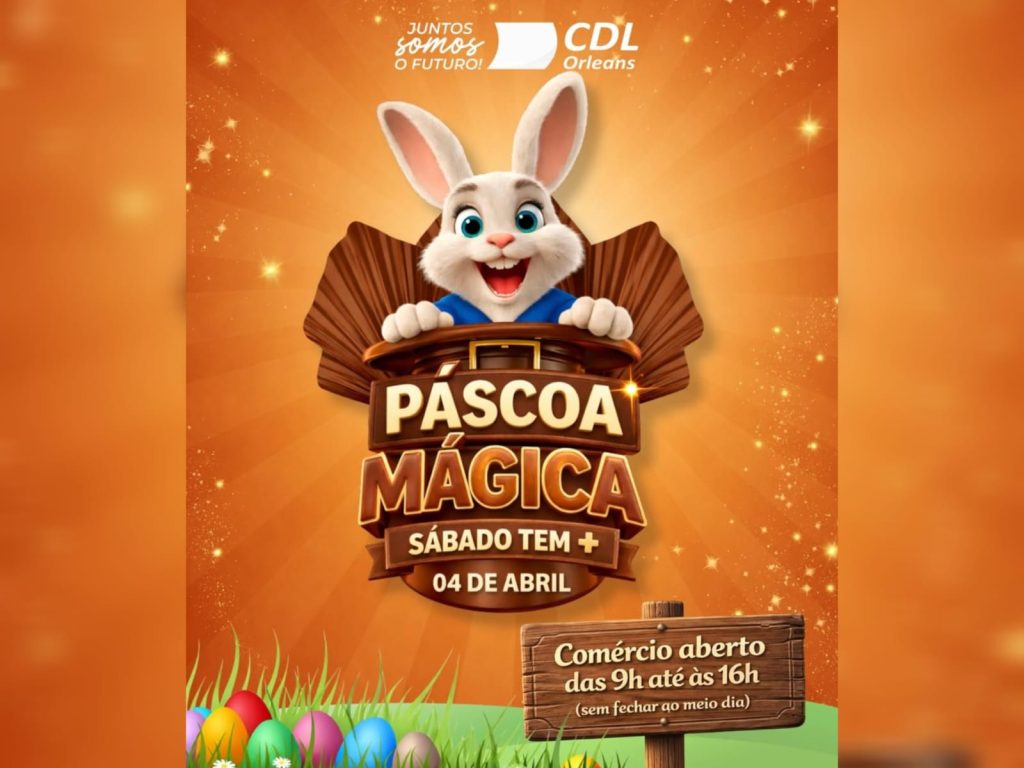 A Câmara de Dirigentes Lojistas (CDL) de Orleans já deu início aos preparativos para um dos momentos mais aguardados pelo comércio e pelas famílias da região. No sábado, dia 4 de abril, a cidade recebe a edição especial do Sábado Tem + “Páscoa Mágica”, prometendo movimentar o centro com atividades gratuitas e horário estendido.