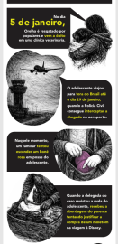 O adolescente viajou para fora do Brasil no mesmo dia em que a Polícia Civil teve conhecimento de quem eram os suspeitos do caso e ficou no Exterior até o dia 29 de janeiro. No retorno, ele foi interceptado pela Polícia ao chegar no aeroporto.