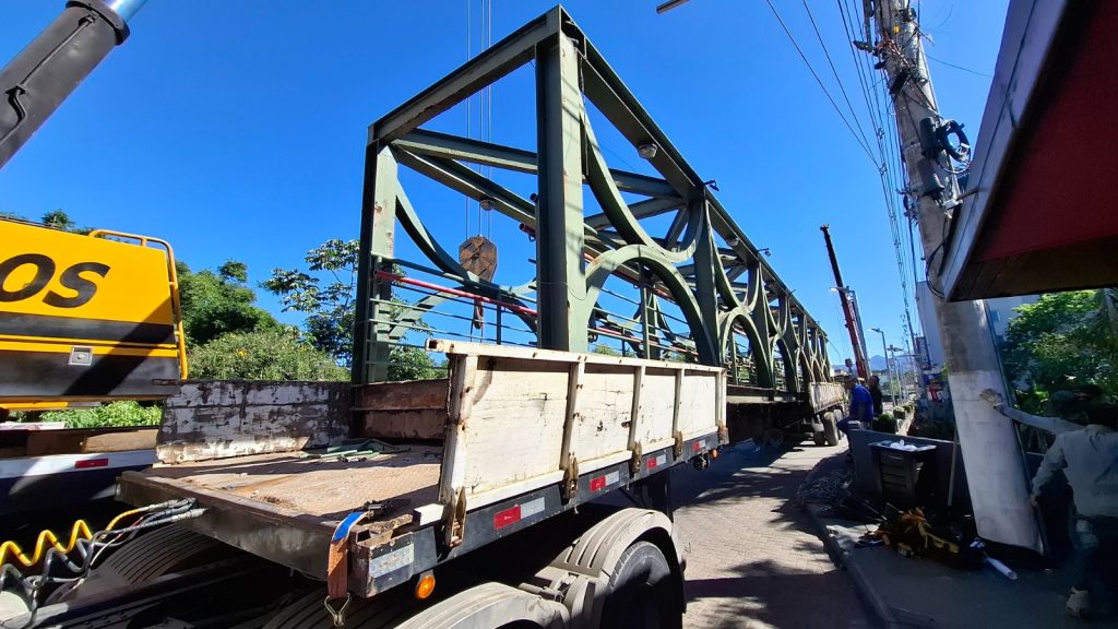 Uma das etapas iniciais do projeto de revitalização da Ponte Dei Morosi foi concluída em Nova Veneza. O equipamento turístico, conhecido popularmente como ‘Ponte dos Namorados’, foi retirado durante uma grande operação neste fim de semana. Prevista para encerrar no domingo (19), a ação foi concluída antecipadamente na noite deste sábado (18), por volta das 20h40.