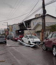 A cidade de Laguna foi atingida na noite deste sábado, por volta das 18h, por um forte evento climático, com ventos intensos, chuva volumosa e descargas elétricas, que ocorreram de forma repentina e localizada. A força do vento provocou danos significativos em diversos pontos do município.
