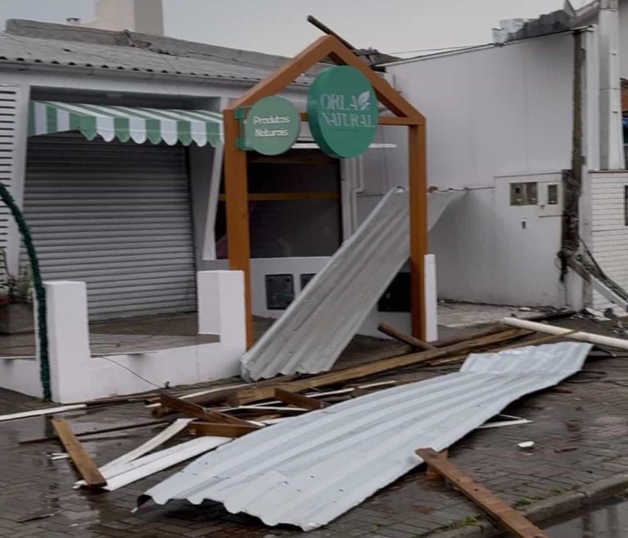 Temporal com ventos intensos causa destruição e atinge dezenas de residências em Laguna