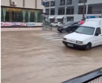 A chuva intensa teve início no começo da tarde e provocou acúmulo rápido de água em vários pontos da cidade. Moradores relataram transtornos no trânsito e dificuldades de acesso a residências e estabelecimentos comerciais.