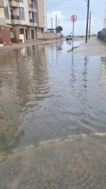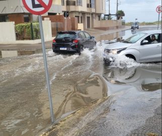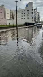 Algumas ruas de Laguna ficaram completamente alagadas na tarde desta segunda-feira, dia 12, após as fortes chuvas que atingiram o município. No bairro Mar Grosso, uma das regiões mais afetadas, diversas vias ficaram intransitáveis, dificultando o deslocamento de motoristas e pedestres.
