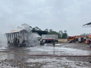 Nesta terça-feira (8), um caminhão-tanque pegou fogo enquanto descarregava 18 mil litros de óleo diesel no bairro Primeira Linha, em Criciúma. O...