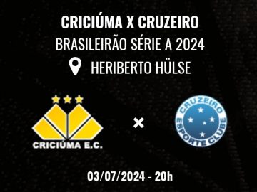 Nesta quarta-feira, dia 3, o Criciúma fará seu segundo jogo consecutivo no Estádio Heriberto Hülse. Contra o Cruzeiro, o Tigre entra em campo...