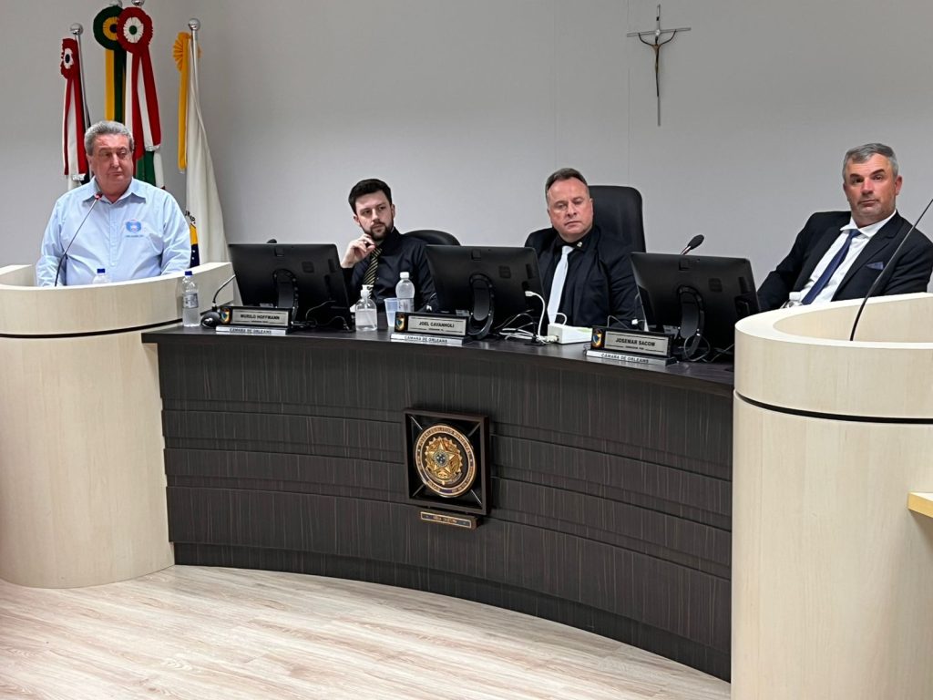 A Câmara de Vereadores de Orleans realizou ontem, dia 24, a 44ª sessão ordinária do ano, marcada por votações rápidas, poucas divergências públicas e pela presença do presidente da Rede Masculina de Combate ao Câncer, Gelson Luiz Padilha, ex-prefeito do município.