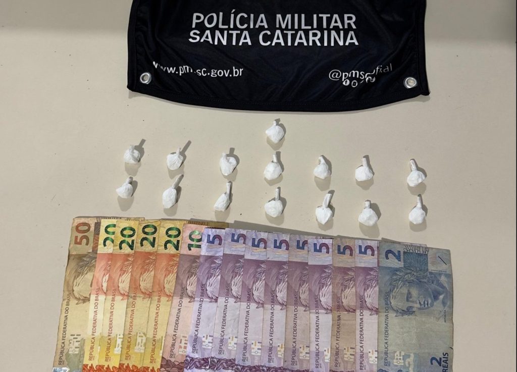 Dentro do imóvel, foram encontradas 14 porções de cocaína prontas para venda, além de R$ 182,00 em espécie. Todo o material foi apreendido.