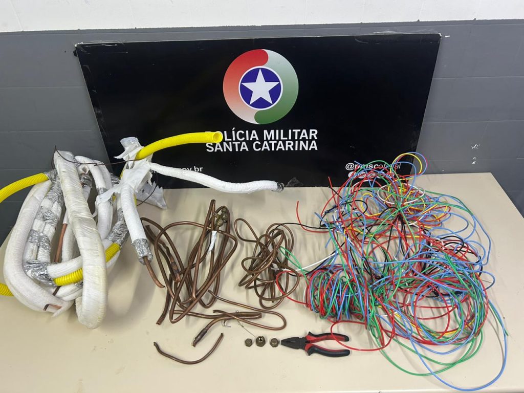A Polícia Militar recebeu uma denúncia de que havia alguém dentro do estabelecimento e foi até o local rapidamente. Quando os policiais chegaram, flagraram o suspeito saindo da empresa com um saco cheio de fiação e cobre retirados do imóvel.