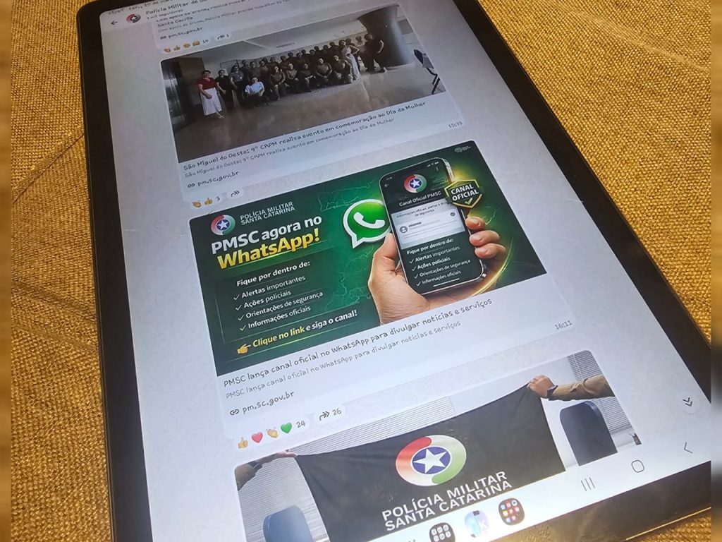 No WhatsApp, procure pelo canal “Polícia Militar de Santa Catarina (PMSC)” e clique em seguir para acompanhar as novidades.