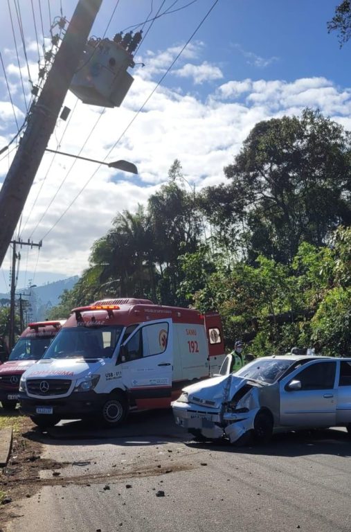Acidente em Orleans: carro bate em poste e criança fica ferida