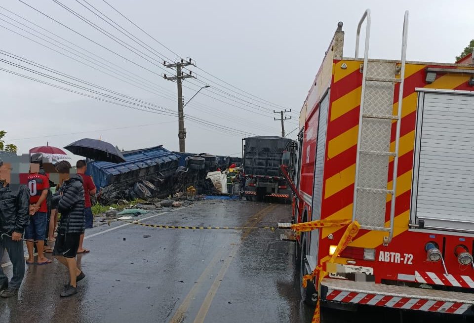 De acordo com o Corpo de Bombeiros, a guarnição  foi a primeira a chegar ao local e encontrou uma das carretas tombada fora da pista, com duas vítimas já fora do veículo. A outra carreta permaneceu sobre a rodovia, com o condutor encarcerado na cabine, exigindo trabalho de desencarceramento.