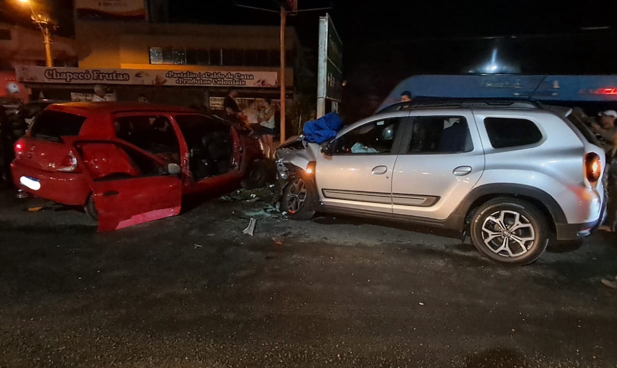 Um acidente entre dois veículos, um Renault Clio vermelho e um Renault Duster prata. deixou quatro pessoas feridas na noite desta quarta-feira (18), por volta das 21h42, na Rodovia Governador Jorge Lacerda, em Criciúma.