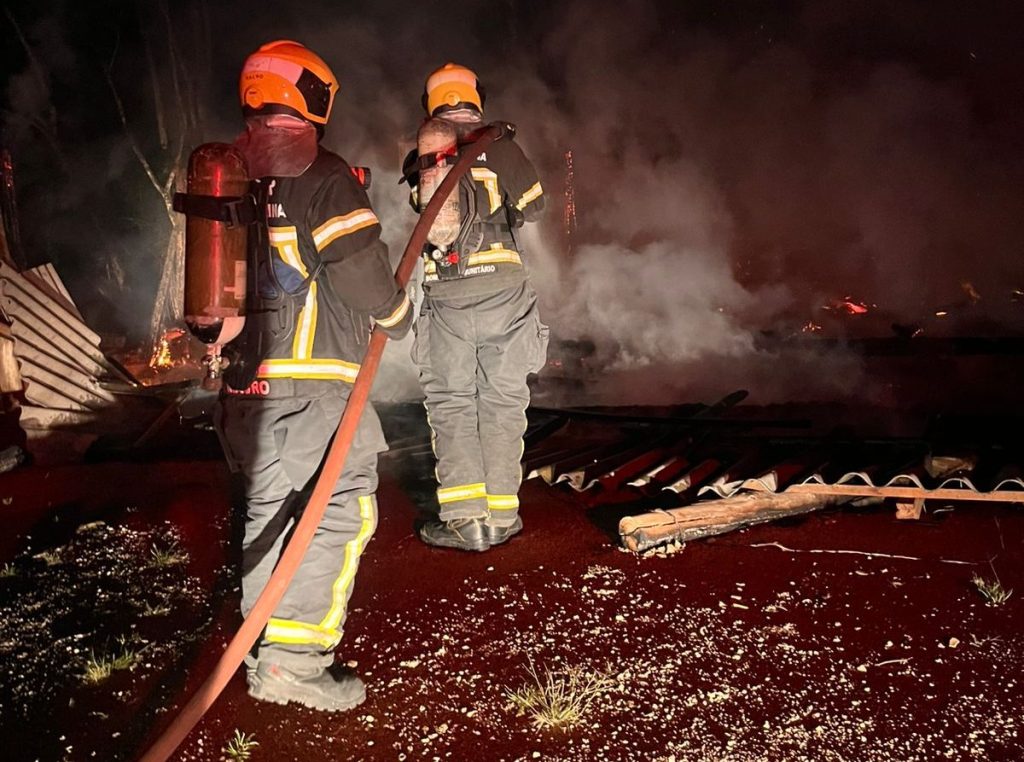 A residência tinha aproximadamente 40 metros quadrados e foi completamente atingida pelo fogo.